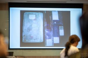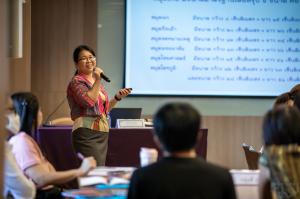 “การอนุรักษ์เอกสารตัวเขียนและการทำทะเบียนเบื้องต้น” โดย คุณนิสา เชยกลิ่น นักวิชาการคลังข้อมูล ศูนย์มานุษยวิทยาสิรินธร (องค์การมหาชน) หัวข้อนี้จะกล่าวถึงการดูแลรักษาเอกสารตัวเขียนต่าง ๆ ที่พบเบื้องต้น เช่น การทำความสะอาดคัมภีร์ใบลาน สมุดไทย และสมุดฝรั่ง ว่าแต่ละประเภทมีวิธีการและข้อควรระวังอย่างไรบ้าง การทำทะเบียนตามมาตรฐานที่ฐานข้อมูลเอกสารตัวเขียนในประเทศไทย ศมส. กำหนด เป็นต้น