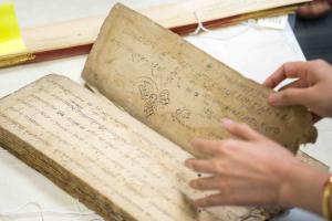 “การอนุรักษ์เอกสารตัวเขียนและการทำทะเบียนเบื้องต้น” โดย คุณนิสา เชยกลิ่น นักวิชาการคลังข้อมูล ศูนย์มานุษยวิทยาสิรินธร (องค์การมหาชน) หัวข้อนี้กล่าวถึง เอกสารตัวเขียนประเภทต่าง ๆ การดูแลรักษาที่พบเบื้องต้น เช่น การทำความสะอาดคัมภีร์ใบลาน สมุดไทย และสมุดฝรั่ง ว่าแต่ละประเภทมีวิธีการและข้อควรระวังอย่างไรบ้าง การทำทะเบียนตามมาตรฐานที่ฐานข้อมูลเอกสารตัวเขียนในประเทศไทย ศมส. กำหนด เป็นต้น
