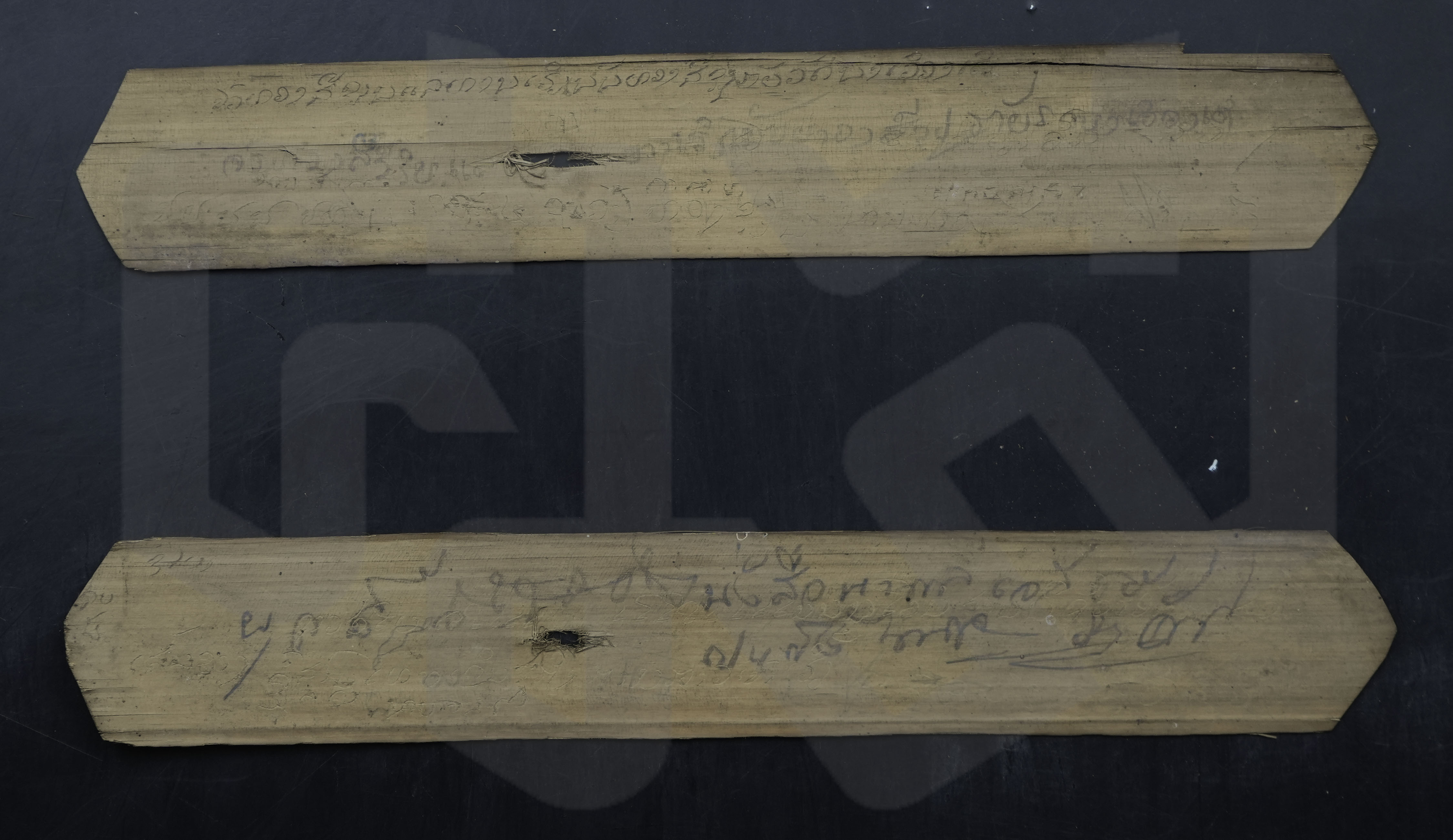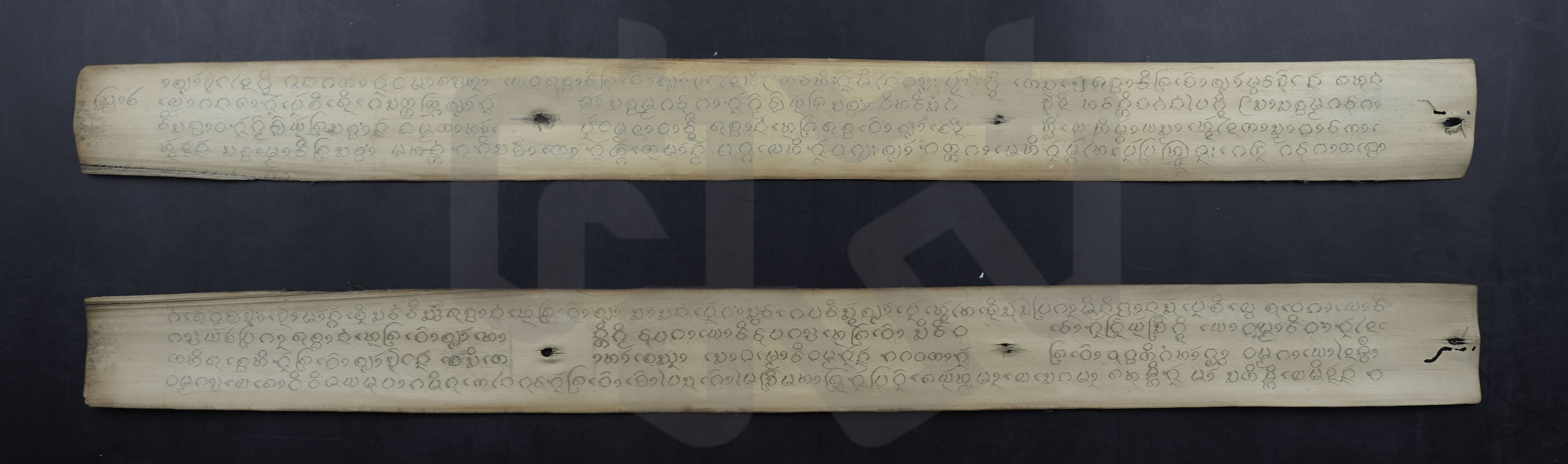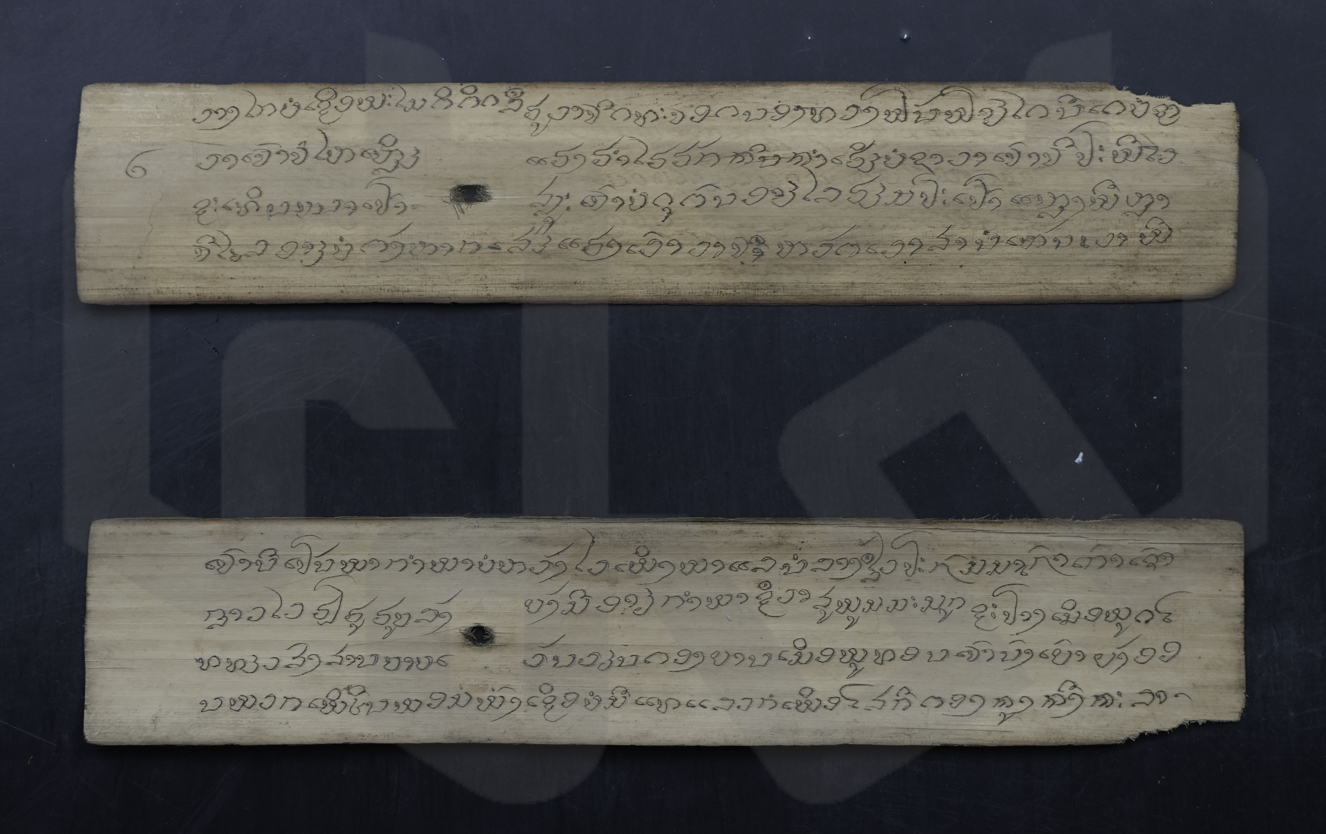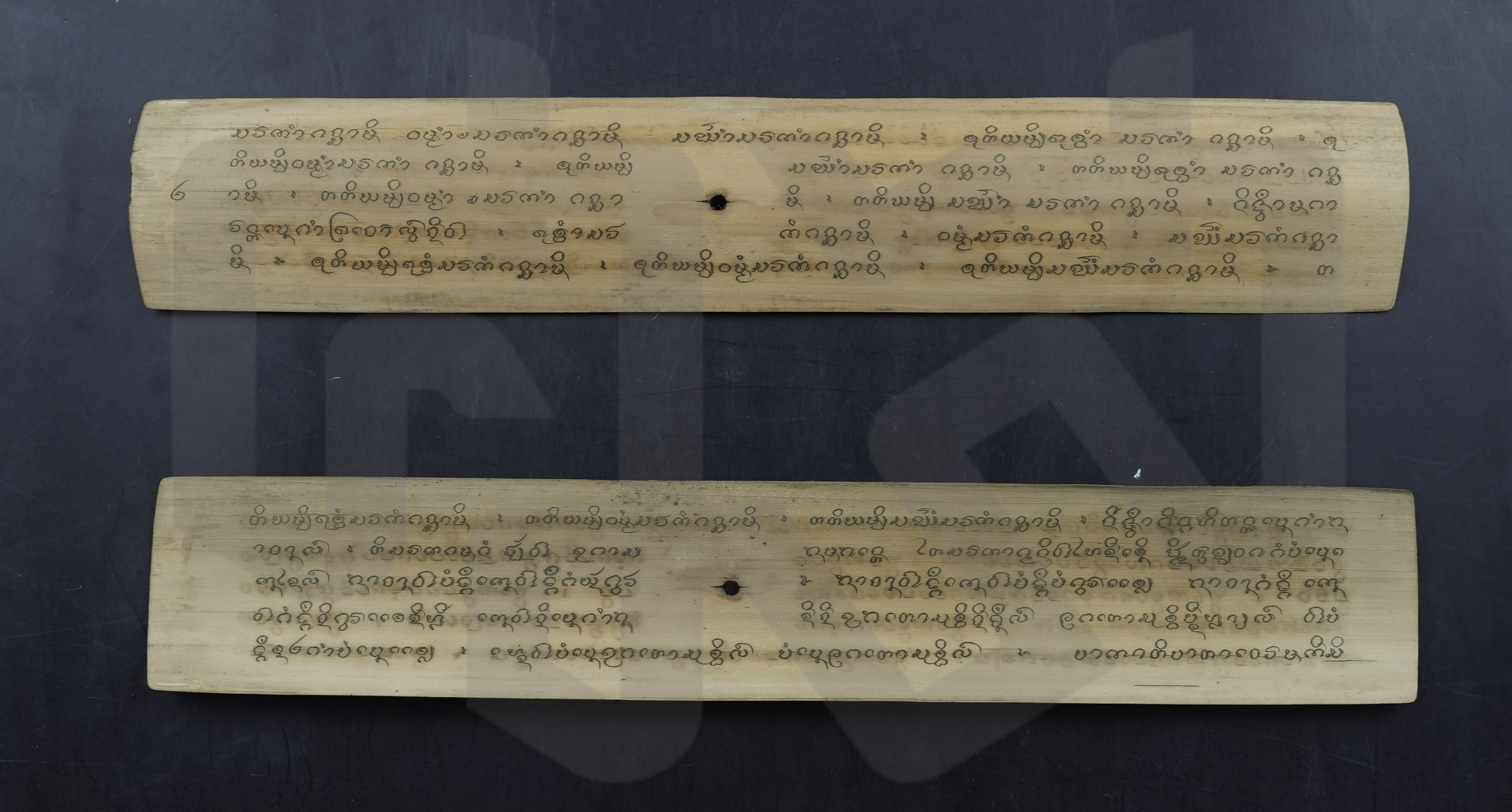 ใบลานสั้น ฉบับลานดิบ ข้อความระบผู้สร้าง "จัวสีทอง"