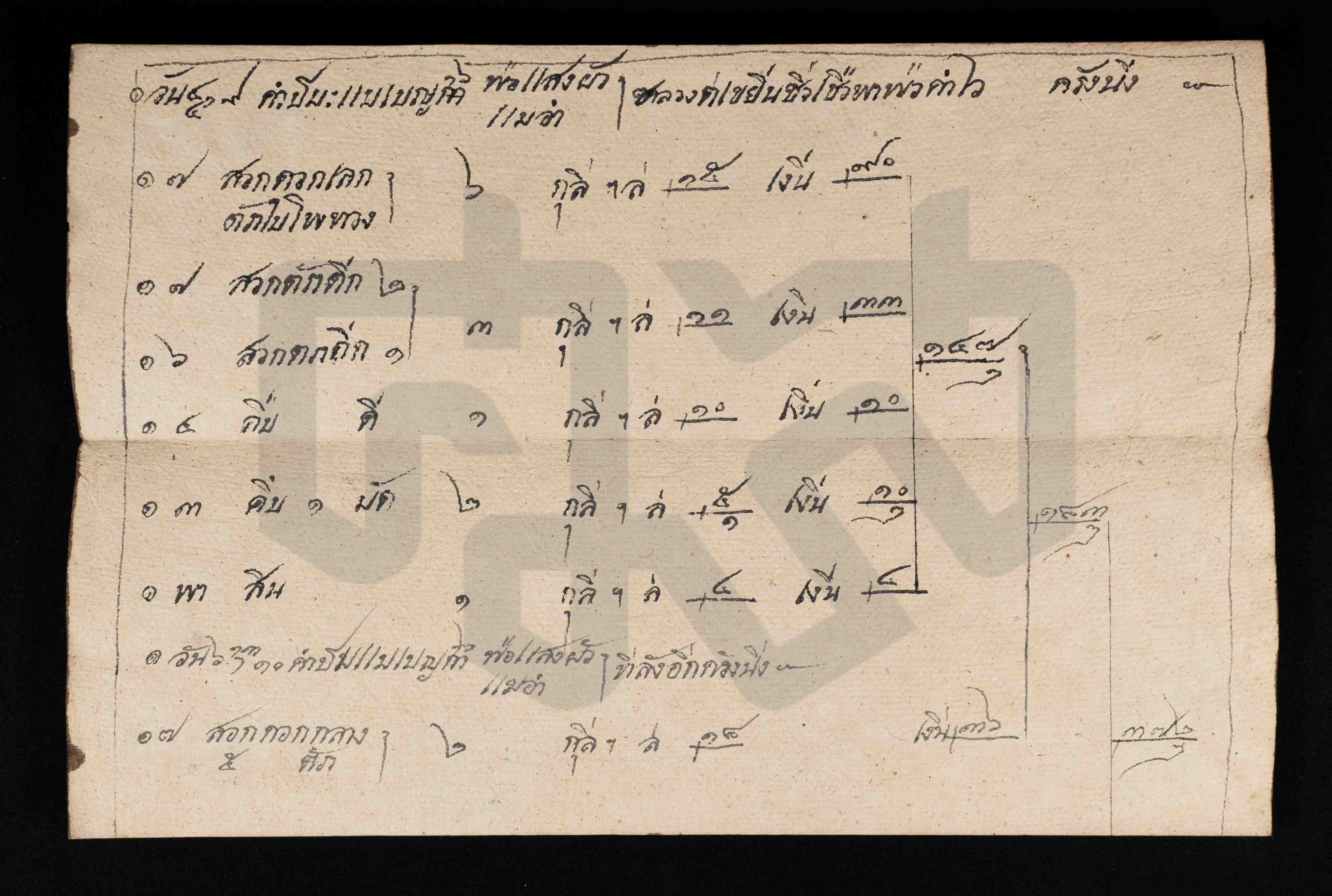 ตำรายาและบันทึกเกี่ยวกับบัญชีผ้าและราคาผ้าแต่ละชนิด