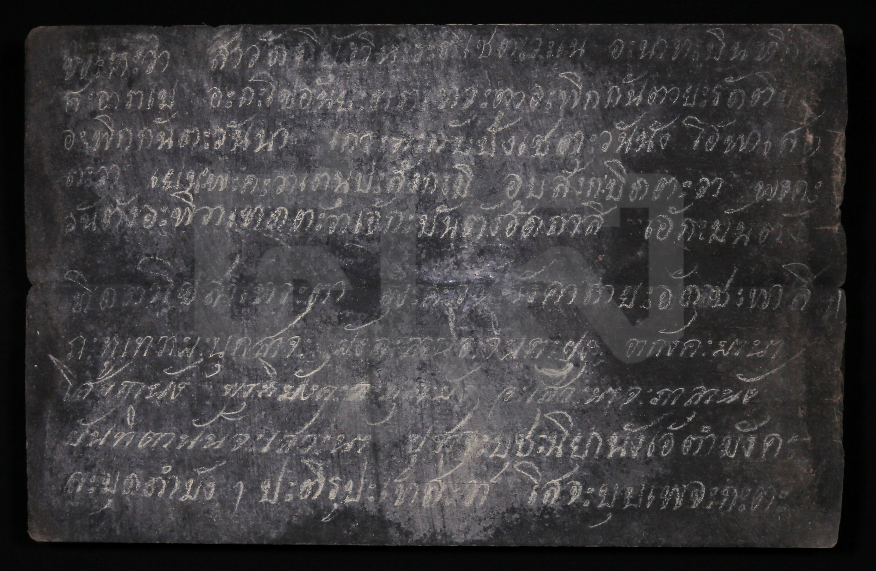 สมุดไทยดำเรื่อง บทสวดมนต์ภาษาบาลี เขียนด้วยดินสอขาว อักษรไทยและอักขรวิธีไทย บางหน้าอักษรเลือนลางอ่านไม่ออก