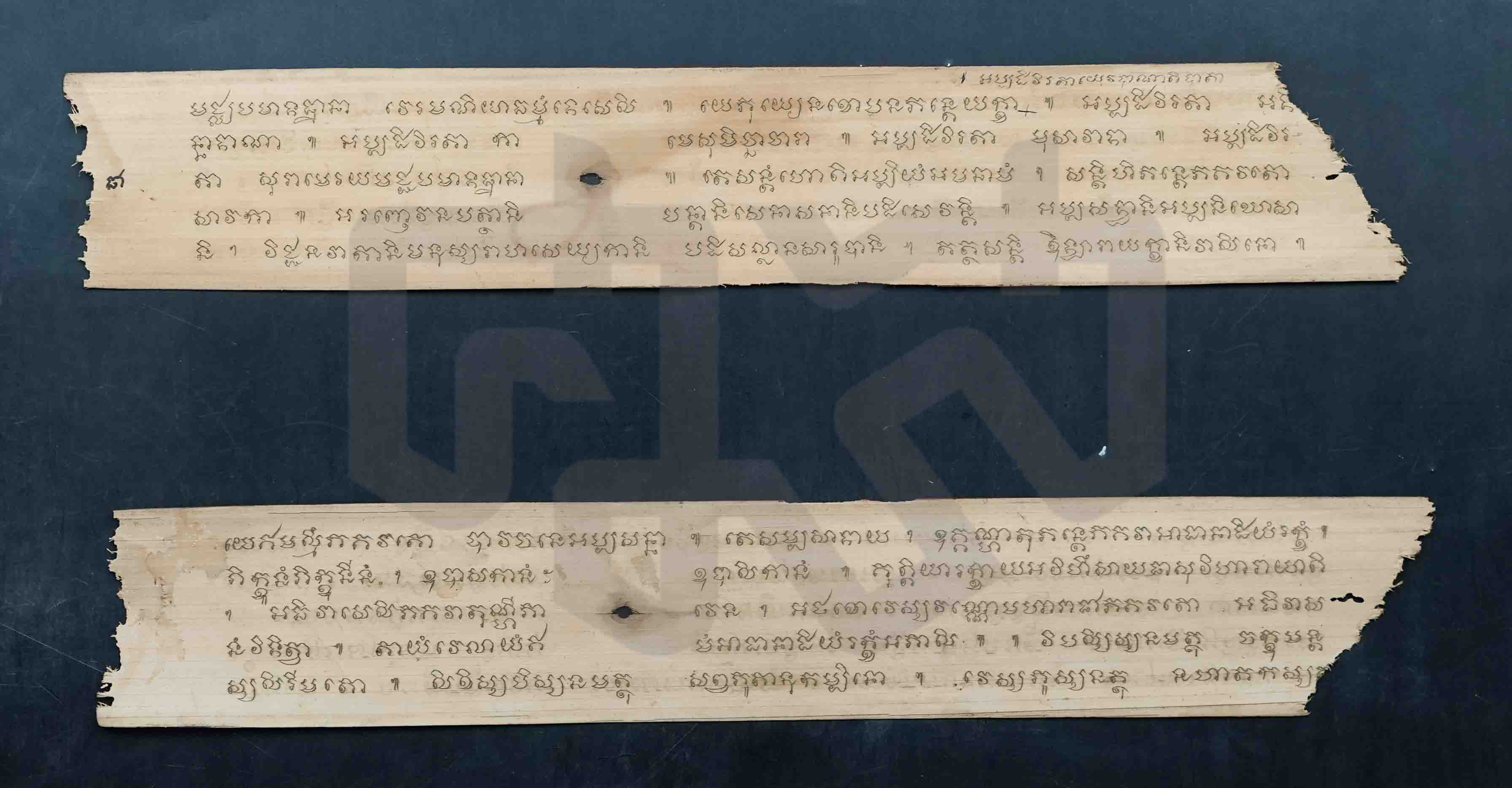 ใบลานขนาดสั้น ฉบับทองทึบ ข้อความระบุว่า "เอามาแต่เมืองไทยแลเป็นตัวขอม" หมายเหตุ กลุ่มเล่าเรื่องเมืองเลยได้มอบไฟล์ดิจิทัลชุดนี้ให้เผยแพร่ในฐานข้อมูลฯ